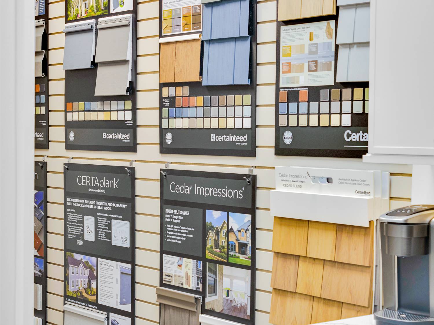 We started “The Design Center” because we saw a problem with the industry when picking out interior and exterior finishes (windows, siding, trim, etc). Most companies make you pick things out of a book. Or make you run around to 10 different locations. We think about things differently. Everyone deserves a chance to touch and feel their selections. At a one-stop- shop for all your interior and exterior finishes. Imagine having your decking, siding, window selections all together so you can see the whole picture. That’s why we created an interactive showroom with designers on staff. Plus, we have all of the top brands and partners, using our exclusive partnerships.